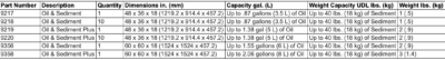 - Holds up to .87 gallons of oil and up to 40 lbs. of sediment