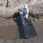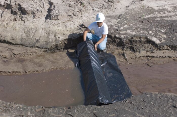 The Silt Dike barrier consists of urethane foam and geotextile fabric. Designed with protective aprons on both sides of the barrier, there is only one sewn seam (on the front upstream side) which allows the barrier to be configured in several different applications.